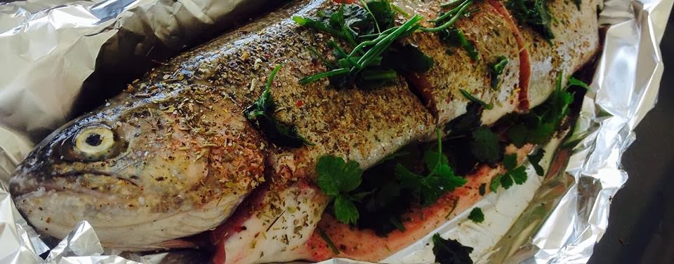 As trutas fresquíssimas que hoje estavam na praça chamaram por mim. Assim, foi dia de fazer truta no forno com ervas aromáticas.