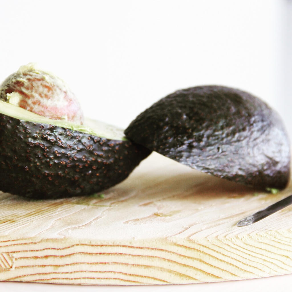 Cortar o abacate ao meio e retirar o caroço.