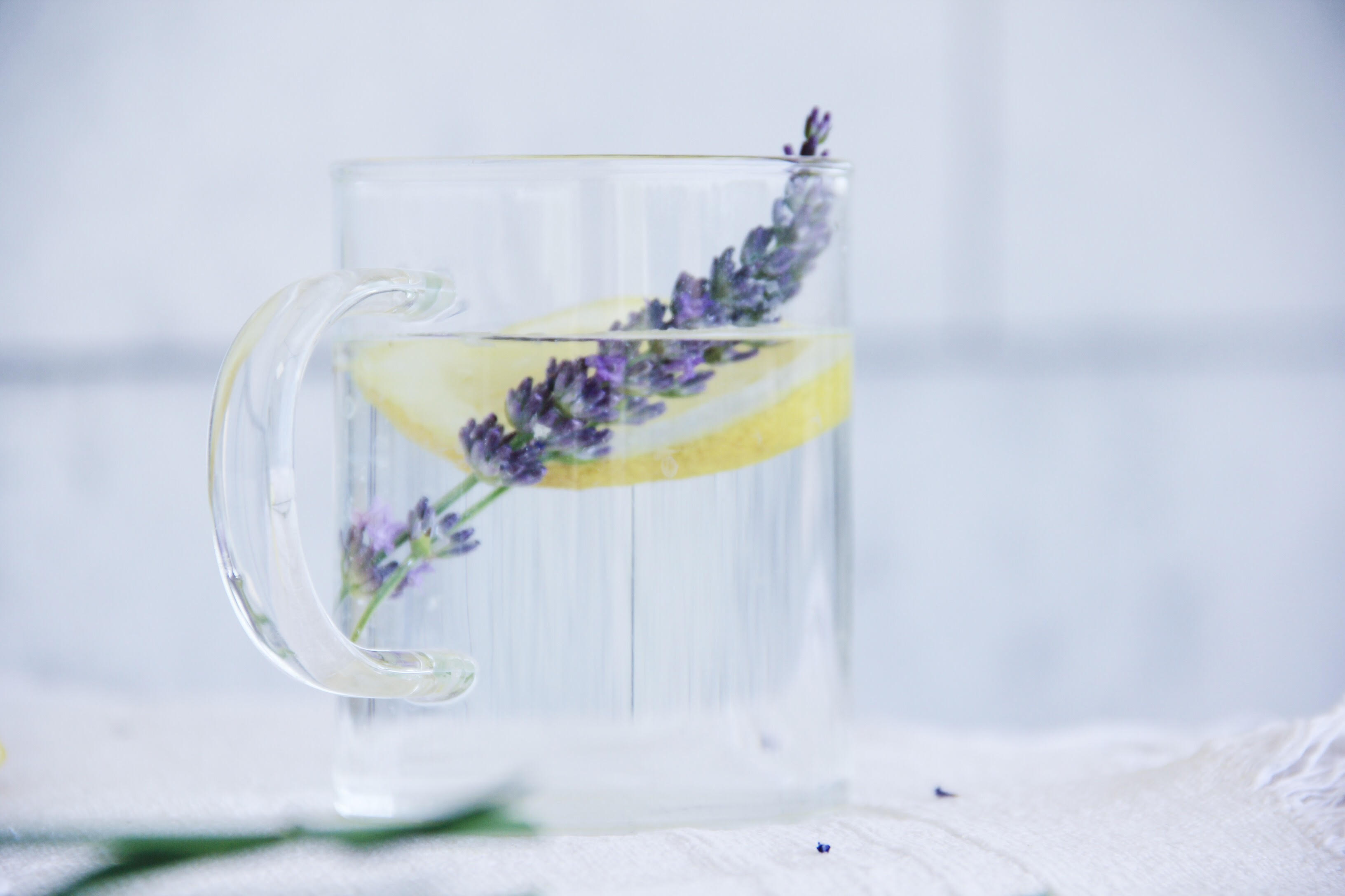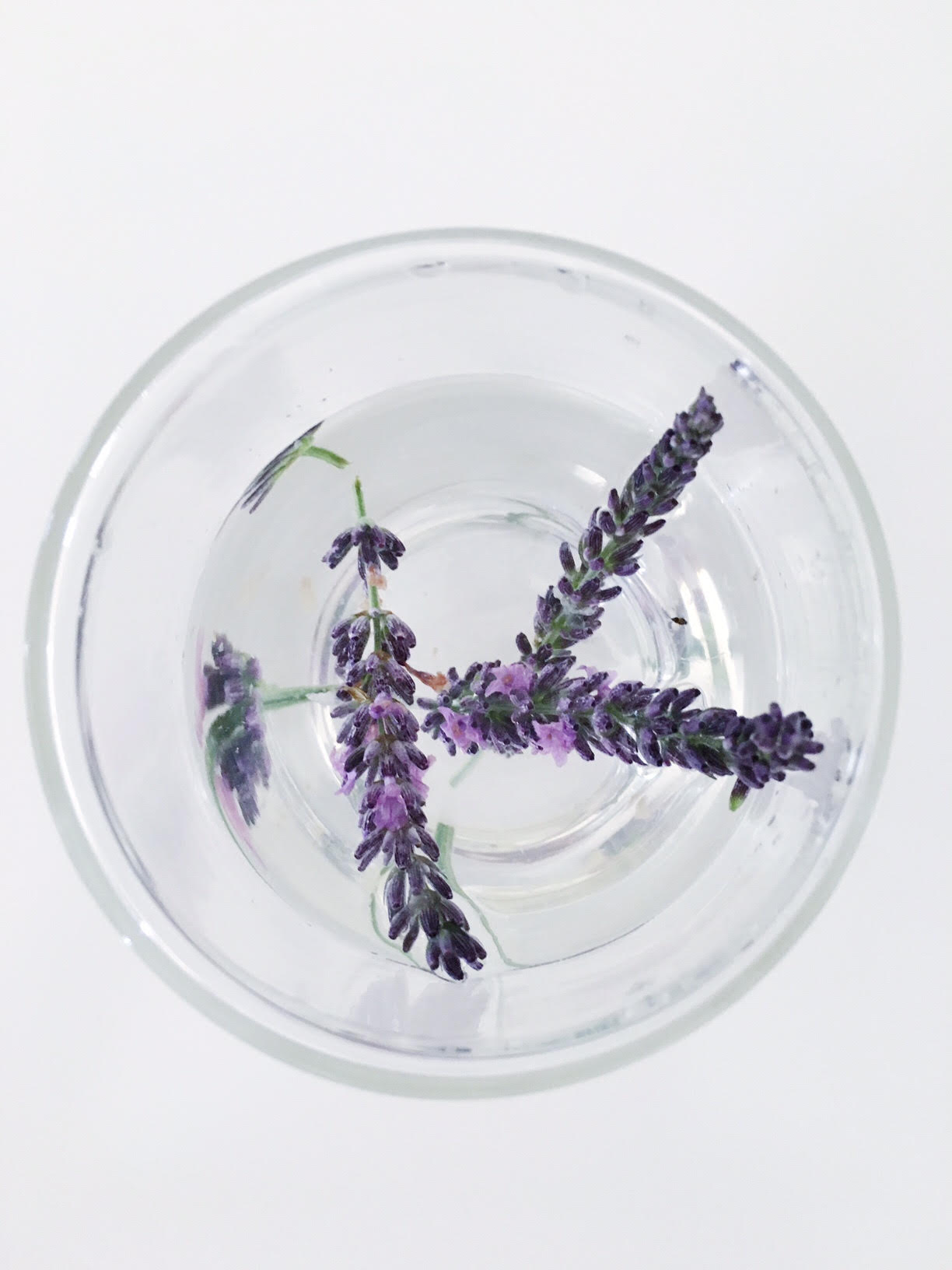 Numa taça, colocar a água a ferver e adicionar os ramos de flor de lavanda.